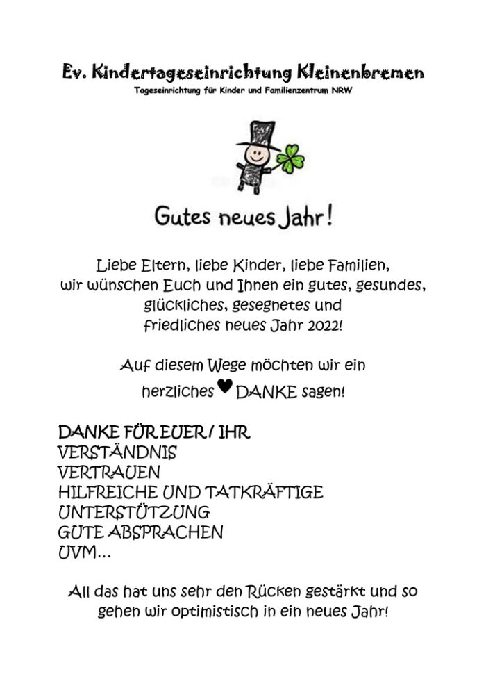 Gutes neues Jahr! Liebe Eltern, liebe Kinder, liebe Familien, wir wünschen Euch und Ihnen ein gutes, gesundes, glückliches, gesegnetes und friedliches neues Jahr 2022!