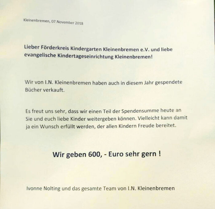 im Namen des Förderkreises des Kindergartens Kleinenbremen möchten wir uns ganz herzlich bei Dir bedanken …