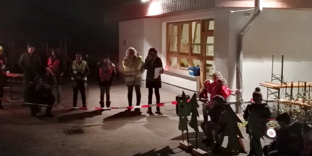 Andre Meyer (Elektro-Meyer) hat die Beleuchtung im Garten installiert und Bäckerei Schäfers spendete die Brötchen! Abgesichert wurde der Umzug von der Freiwilligen Feuerwehr in Kleinenbremen, so war der Zug durch Blaulicht und Laternen gut zu erkennen.